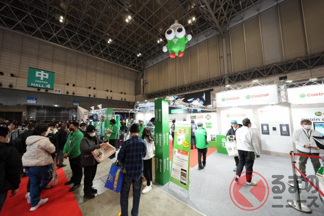 「TEIN & CASTROL」ブースの場所は中4ホールで、テインのマスコットキャラクター「ダンパッチ」のバルーンが目印です。
