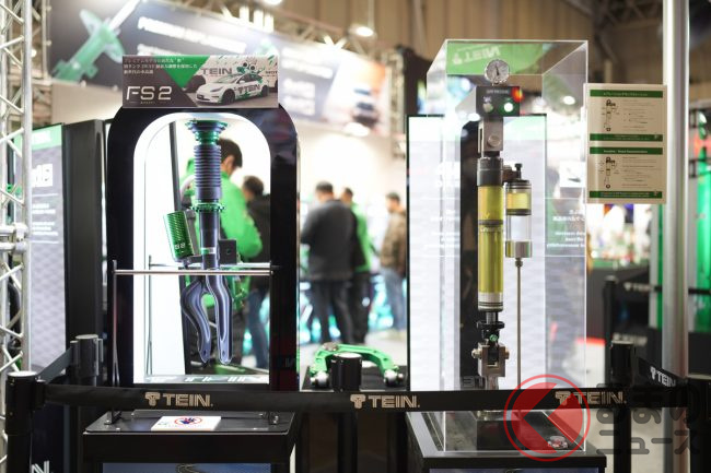 自動車用サスペンションメーカーのテインは、2025年1月10日〜1月12日に幕張メッセ(千葉市)で開催中の「東京オートサロン2025」に「TEIN & CASTROL」ブースを出展しています。