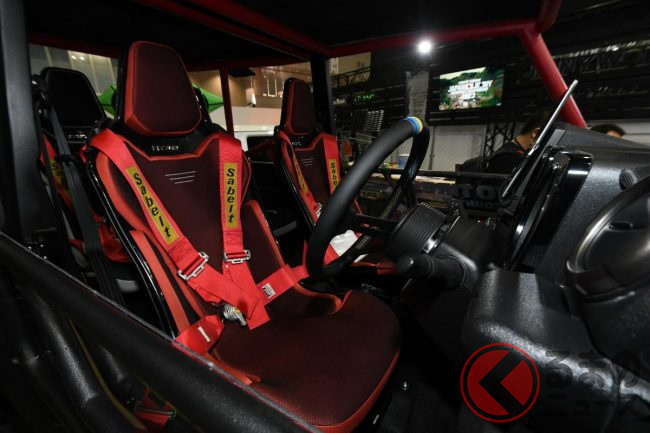 同車は、カスタムコンプリートカー「エヌズリミテッド」をベースに、さらなるカスタムを加え、不整地走行に特化した仕様となっています。