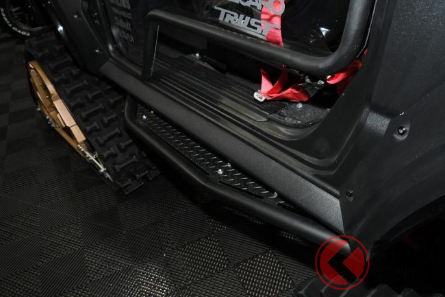 さらに、ノースウェスト特殊車両製のクローラーを4輪に装着することで、雪道やぬかるみ、急勾配の山道など、過酷な地形でも安定した走行性能を発揮します。