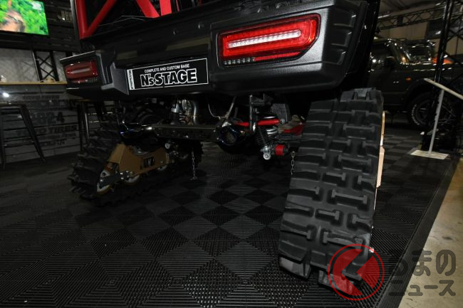 斬新「“スケスケ仕様”のジムニー」がスゴイ! 「タイヤじゃない」ゴツイ足回り採用&公道走行可能! ジムニー数台分を費やした最強モデルのエヌズ・ステージ「リトルモンスター」とは?