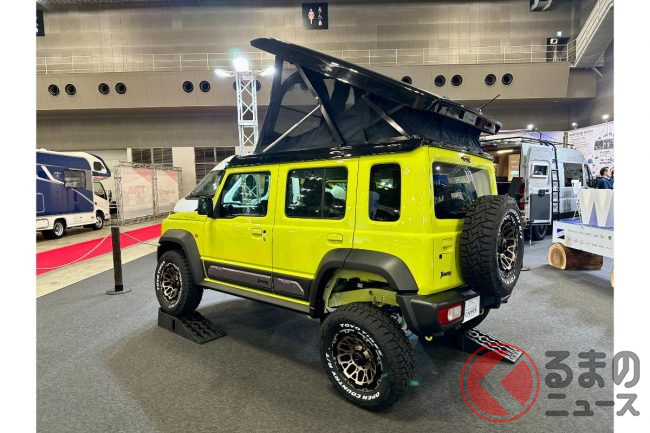 もう…? スズキ斬新「ジムニー5ドア」実車展示! 屋根開く仕様&Gクラス風も!? 3ドアとは違う…!? 5ドアカスタムをオートサロンで公開