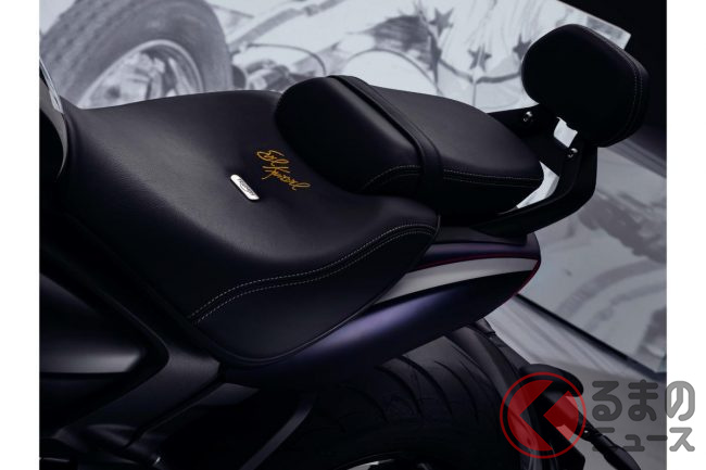 さらにサファイアブラックのリアパネルには、イーベル・クニーヴェルのロゴがゴールドの刺繍が施されたレザーシートを装備するほか、独自のスタートアップアニメーションやレーザーエッチングされたサインロゴ、シリアルナンバー入りのエンジンカバープレートなど、特別感を強調する専用アイテムがあしらわれました。