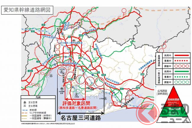 名古屋~岡崎が「信号ゼロ」!? 東名第3ルート「名古屋三河道路」ついに先行区間がルート決定 まずは「知多~安城」の地獄渋滞が解消!? 住民から期待の声も