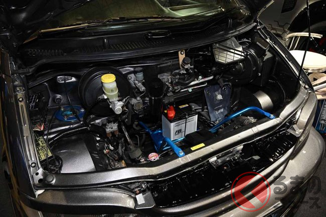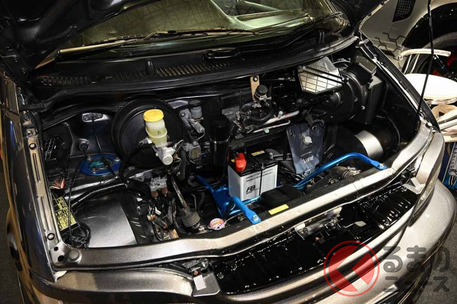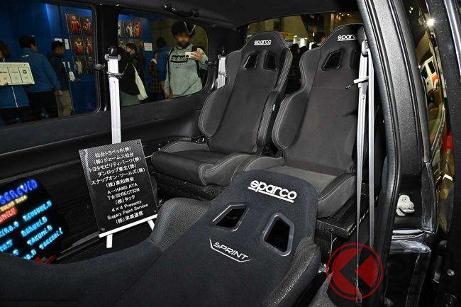 そのなかで、東京オートサロン2024内では、スポーツカーのエンジンを搭載し、マニュアルトランスミッションを採用したとあるミニバンに、一風変わったカスタムを施したモデルが披露されていました。