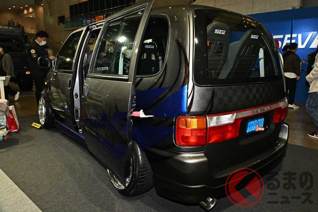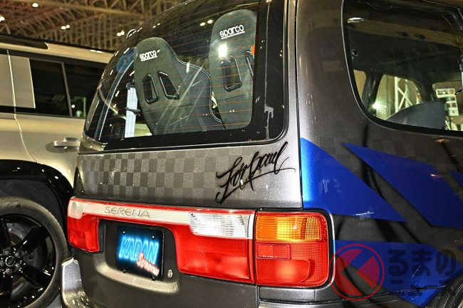 同車は「スポコン(スポーツコンパクト)」のテーマのもと、日産のミッドサイズミニバン「セレナ」の初代モデル(最終型の1997年式)をベースに、内外装にカスタム及びチューニングが施されている1台です。