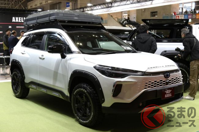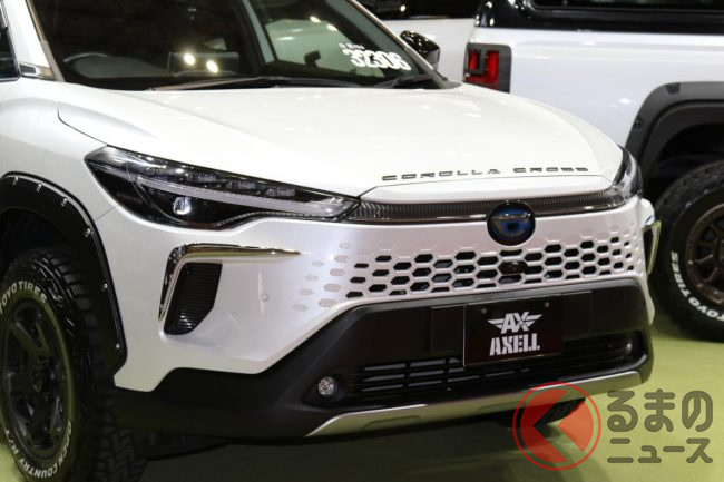 斬新「カローラSUV」初公開! まさかの「レクサス顔」採用&“ゴツゴツタイヤ×リフトアップ”のオフロード仕様! “黒ロゴ”がカッコいいアクセルオート「カローラクロス」東京オートサロン2025登場!