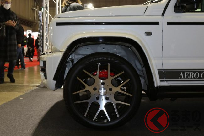 同車はメルセデス・ベンツの本格オフロードSUV「Gクラス」のハイパフォーマンスモデルであるメルセデスAMG「G63」をリスペクトし、既にジムニー3ドアで同様のキットを開発した経験を活かしながら、ジムニー5ドア専用に細かい部分の造形にまでこだわったといいます。