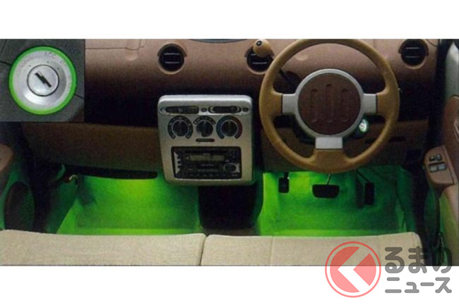 内装も外観と調和するようにデザインされており、シートやインテリアトリムにカラフルな素材が使用され、円形のエアコン吹き出し口や、シンプルなメーター類がレトロな雰囲気を醸し出している。