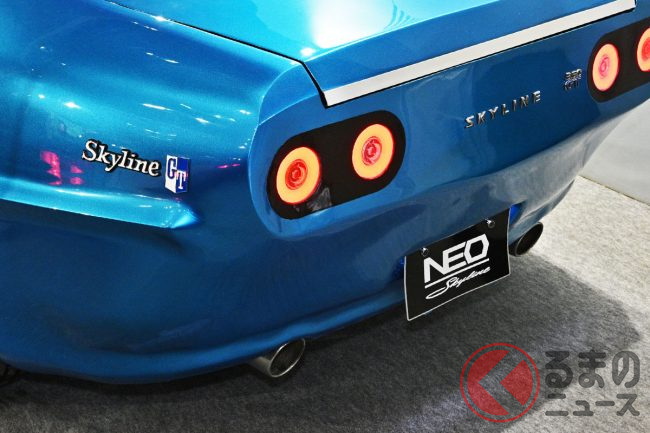 日産が「現代のケンメリ」を初公開! 美しすぎる2ドア「旧車デザイン」×斬新「トモアキブルー」がカッコイイ! 現代に蘇った“伝説モデル”「NEO SKYLINE」TASで披露