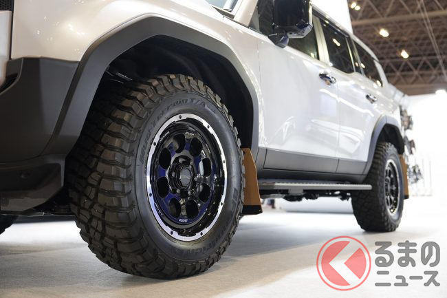 またトヨタ ランドクルーザー250にも2種類の新作ホイールを装着しています。ブロックタイヤを装着してもスポーツ性能を極めるべく、軽量化を追求した鍛造のA LAP 08Xと4WD用ホイールブランド、TEAM DAYTONAの新作モデル、D9といずれも雰囲気の異なる仕上がりですしかも、いずれも車検対応となっているだけに、ユーザーにとってはカスタムの参考になるのではないでしょうか。