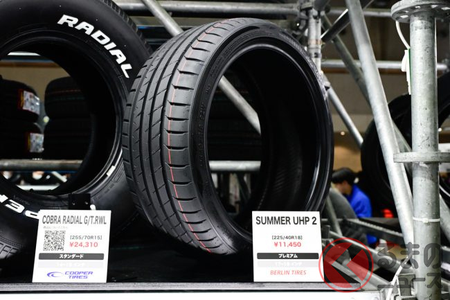 今回のオートウェイブースで注目したいブランドが、ドイツのタイヤブランドである「BERLIN TIRE」で、プレミアムグレードのSUMMER UHP1/SUMMER UHP2ともにリーズナブルな価格設定でありながら、オンロードで求められる性能を高いレベルで実現しているそうです。