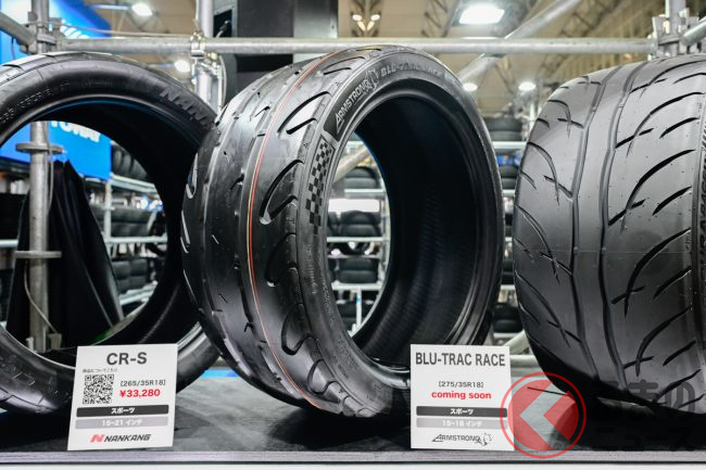 さらに最近、オートウェイが注力しているのがスポーツタイヤのラインナップの増強で、ステアリングで有名なイタリアのmomo、アメリカのARMSTRONG、タイのOTANIなどスポーツ性能の高いモデルを多数展示。これらのタイヤはサイズラインナップが充実していることもポイントです。