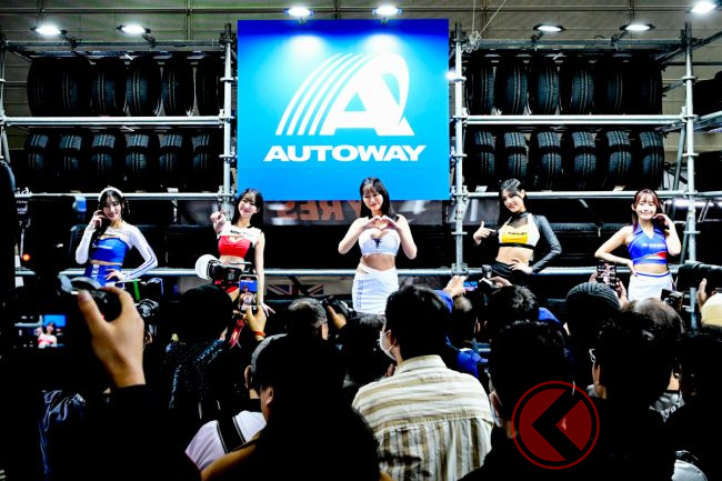 オートウェイが、2025年1月10日〜12日に幕張メッセ(千葉市)で開催中の「東京オートサロン2025」にブースを出展しています。今年発売予定の新作輸入スポーツタイヤや、タイヤ4本がもらえるゲームなどを展開し、多くの人でにぎわっています。