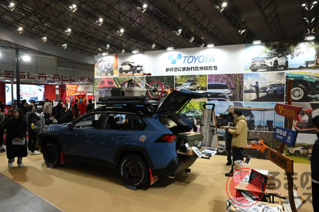 メーカーの系列会社の展示を巡るのも、東京オートサロンの楽しみのひとつです。トヨタの「RAV4」の企画・デザイン・設計に参画し、生産も行なっている豊田自動織機は、2台のRAV4を展示しました。