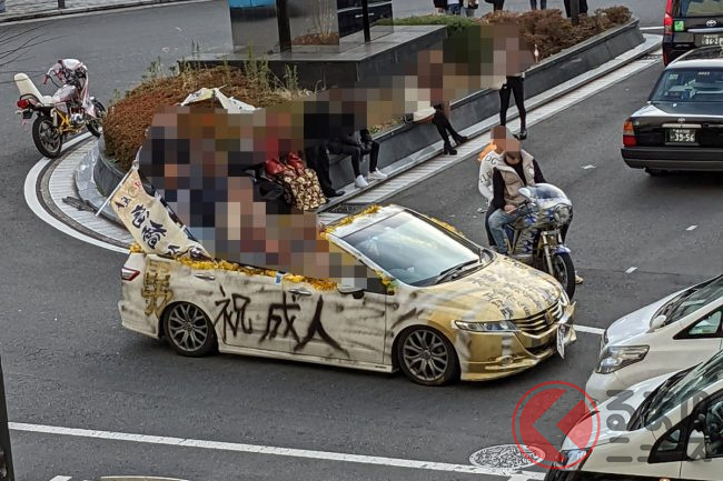 今年も暴走行為「成人式」であった? 屋根ナシ「プリウス」目撃される… 全国各地で「成人式(ハタチの集い)」開催 荒ぶる若者は減ったのか