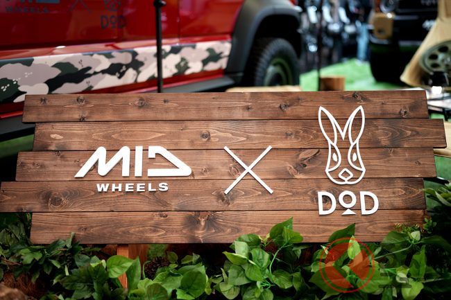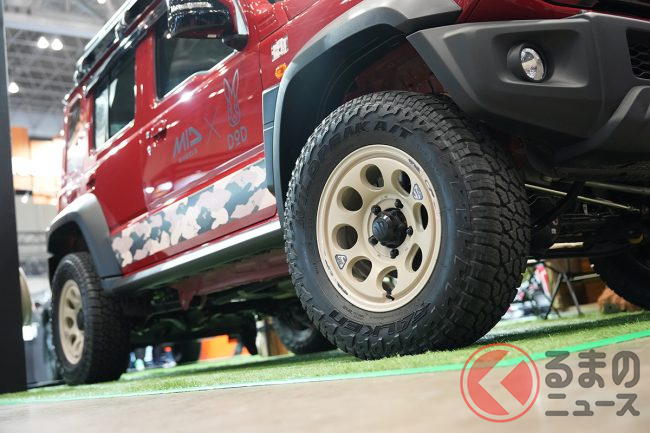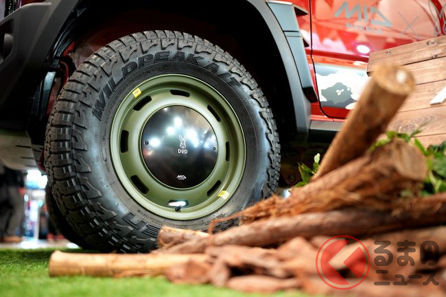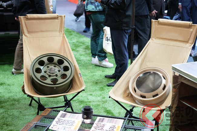 アウトドアブランド「DOD」とコラボしたポップなホイールも展示