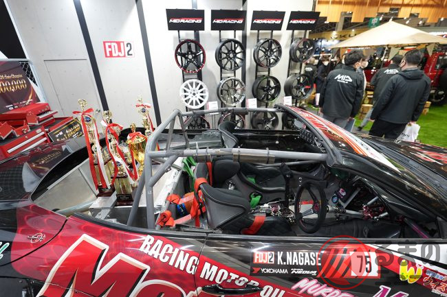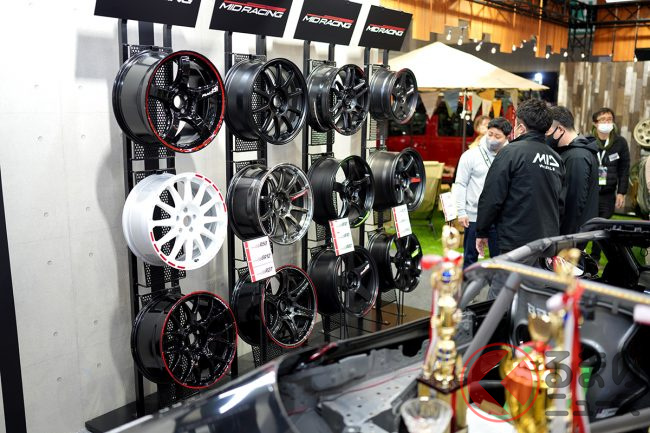 そのほか、モータースポーツラインであるMID RACINGでは、FDJ2(フォーミュラドリフトジャパン2)のワンメークホイールとして提供することが発表されました。MID WHEELSにもレーシングホイールがあることを知ってもらい、これからFDJを目指すような若手ドライバーに履いてもらうことによって、スポーツホイールのイメージをさらに広めたいと考えているそうです。