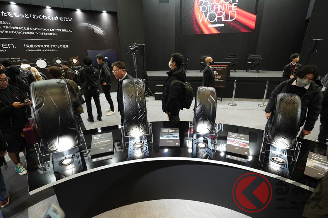 そのほか、ロータリーエンジンを搭載することを想定したマツダ ICONIC SPや電動化されたモデルでも走る楽しみを追求したSUBARU SPORT MOBILITY、レクサスのBEVのフラッグシップコンセプトモデルである LF-ZLなど、ジャパンモビリティショー2023に出展されたコンセプトカーに装着されていた、未来を想起させるような独創的なコンセプトタイヤの展示も行われていました。
