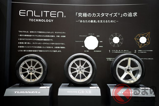 タイヤメーカーの「ブリヂストン」が、2025年1月10日〜1月12日に幕張メッセ(千葉市)で開催された「東京オートサロン2025」にブースを出展しました。