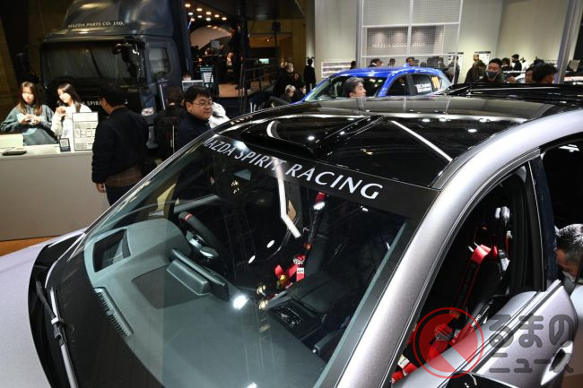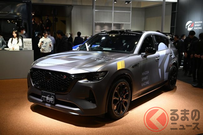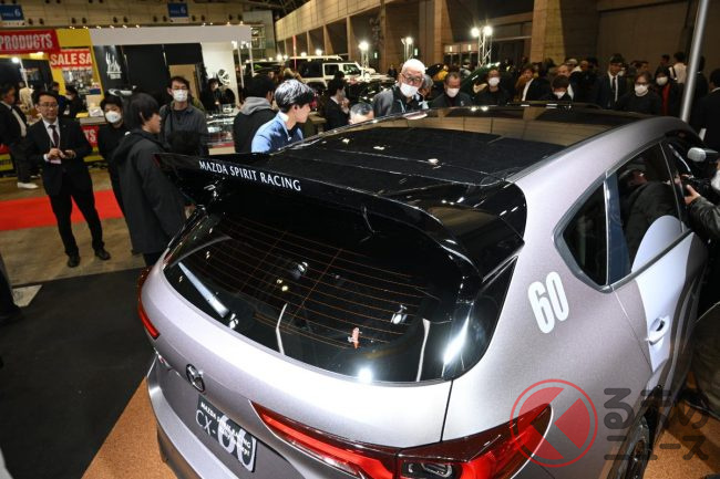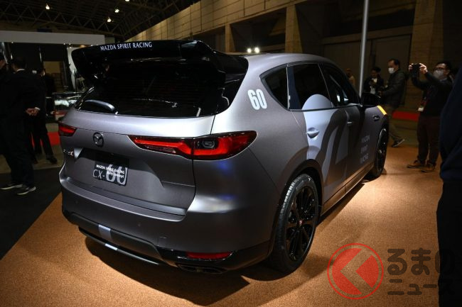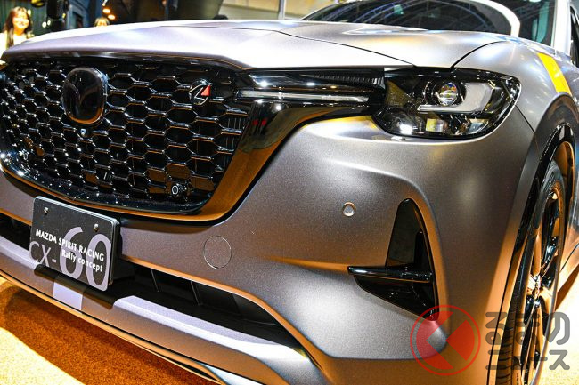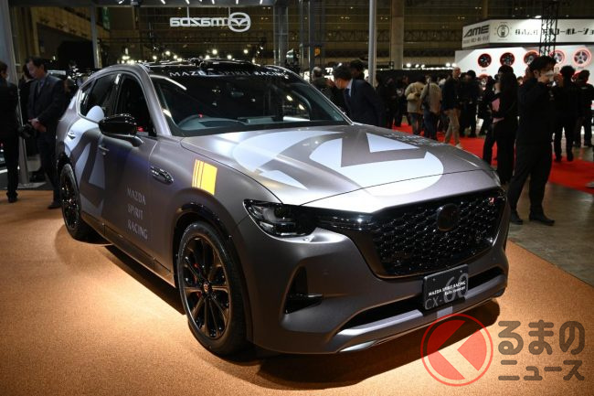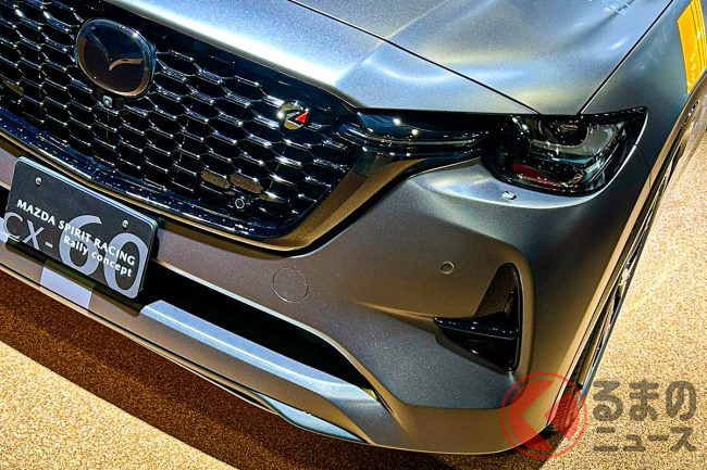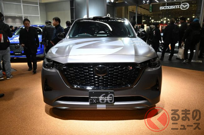 マツダによると「クロスカントリーラリーカーをイメージしたモデルで市販予定などはありません。『もしCX-60がラリーに出場したら?』というテーマで作られたもので『将来的にはこういうモータースポーツにも挑戦していければいいな』という想いをカタチにした」とのこと。