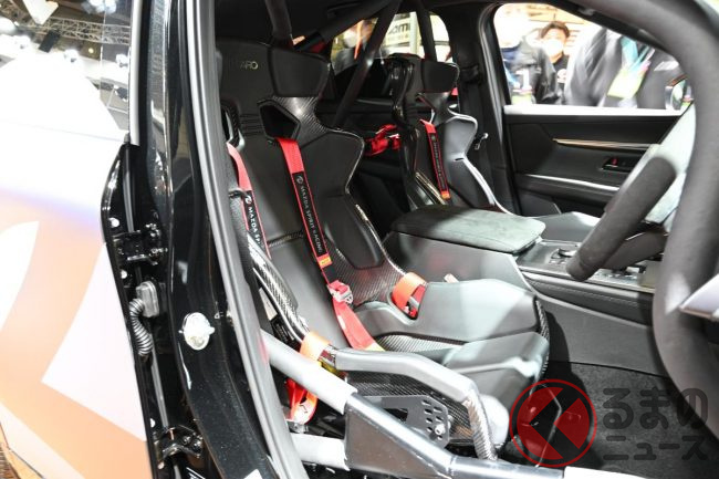 たとえばシートは運転席と助手席がレカロ製の超軽量フルバケットタイプで、5点式のシートベルト付き。そしてリヤシートは取り外されています。“SUVなのに2人乗りなんてアリ?“と思ってしまいます。