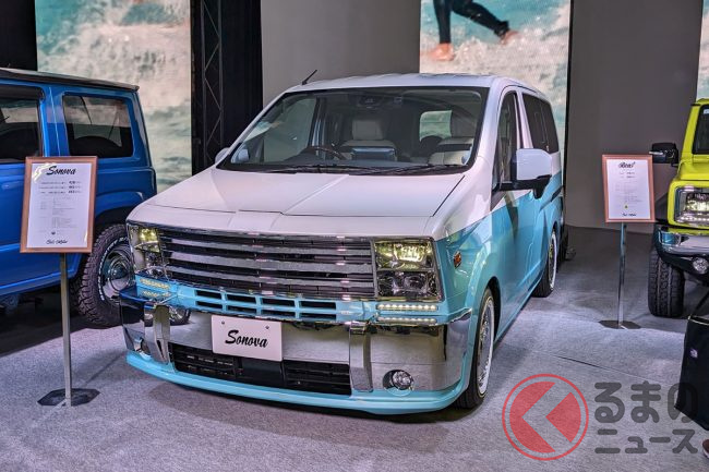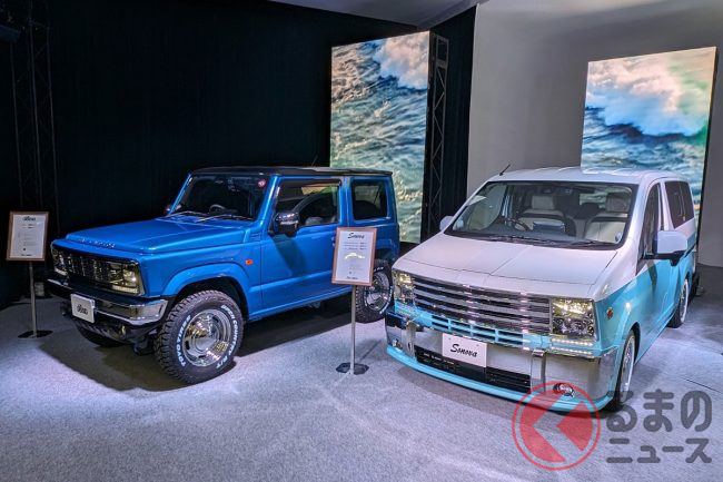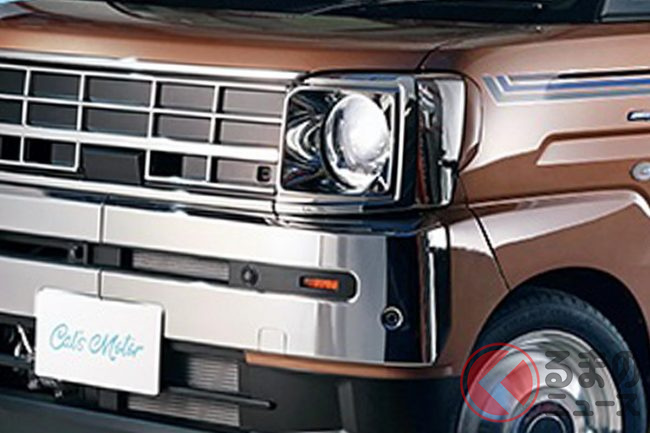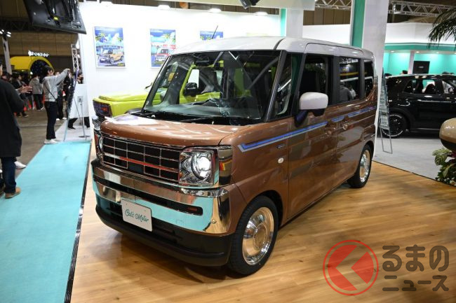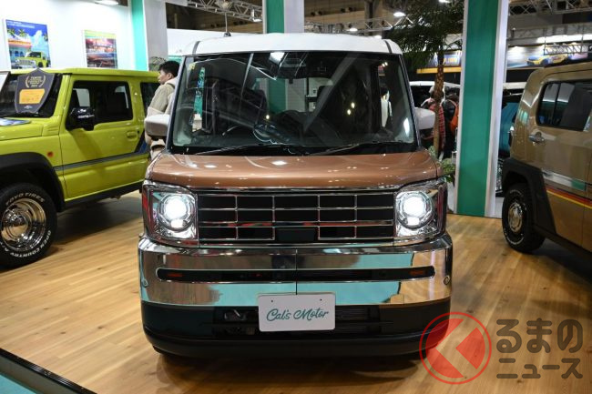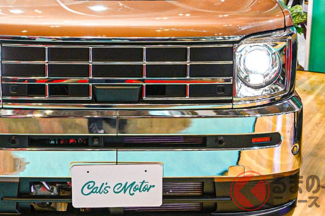 “レトロ顔”のスズキ「スペーシア」!?初公開! メッキの「旧車デザイン」で「クラス超え」の迫力! 新カスタムモデル「キャルズ モーター サンディ」登場