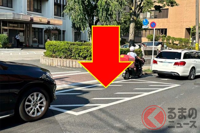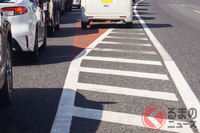「知らないなら免許返納!?」 道路にある「謎の斜線ゾーン」 一体どんな意味? “無視”したら「違反の可能性」も! 意外と知らない人も多い「シマシマエリア」 何のためにあるのか