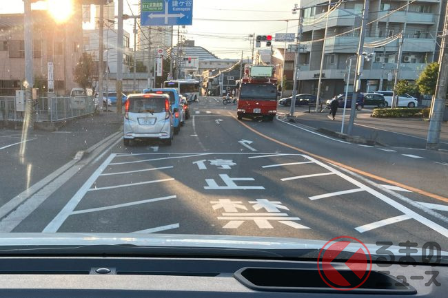 一方で、クルマが連なって走行している時は、停止禁止部分が設置されていることに、直前まで気づかないかもしれません。
