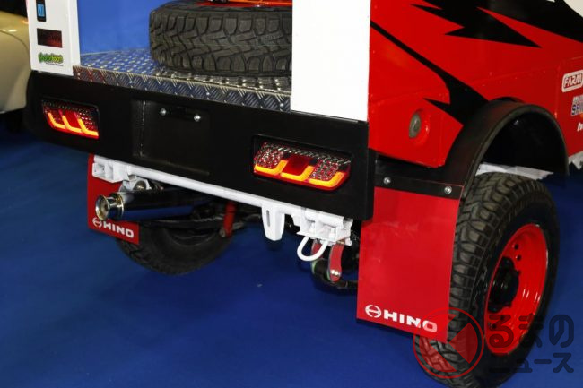 それらをニコイチにして「Small and Big Rally Car」のコンセプトのもと、パリ・ダカールラリーに参戦している日野「レンジャー」をミニサイズで再現したといいます。