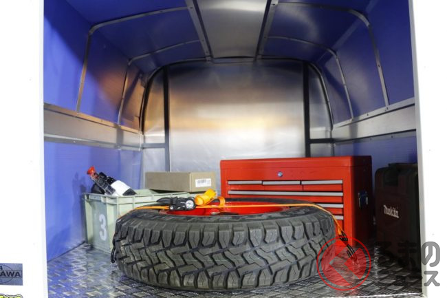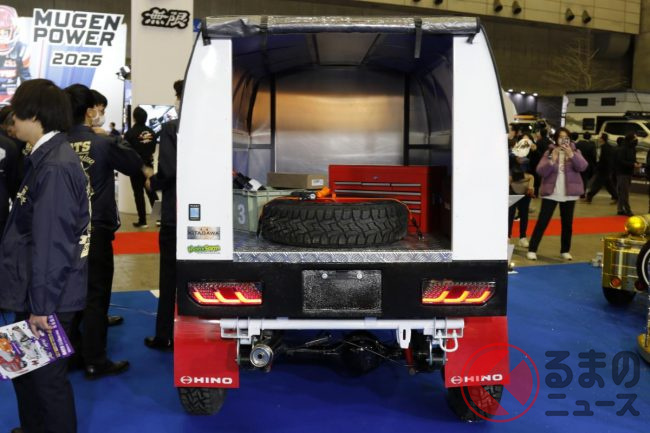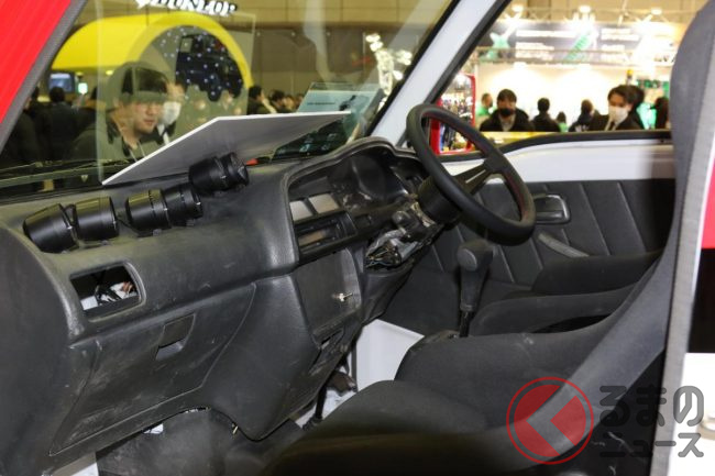 また、テールライトは現行ジムニーのものを、ヘッドライトにはダイハツ「ハイゼット」のパーツを、フロントグリルは日野「デュトロ」の部品を採用するなど、灯火類は既存の車種を流用する創意工夫がなされているのもポイントです。