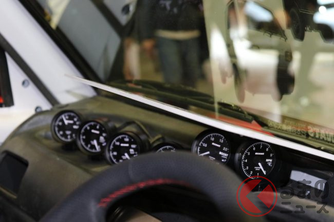 一方で内装には、BRIDEのフルバケットシートやNARDIのスポーツタイプのステアリング、さらにダッシュボードには追加されたメーター類が置かれ、外装に負けないレーシーな雰囲気にアップデートされています。