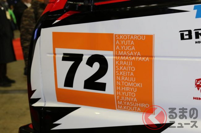 ちなみにボディカラーもレッドとホワイトを基調とした、ラリーカーを意識した配色となっており、ドア部分にはレース車両にドライバーの名前が記されている部分をオマージュして、製作班の学生たちの名前が入っているのを発見。