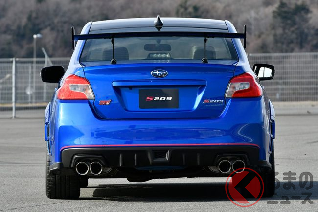 スバル「究極のWRX STI」がスゴかった! 歴代史上“最高にパワフル”な水平対向ターボ搭載! オーバーフェンダーがイカつい米国専用「S209」どんなモデル?
