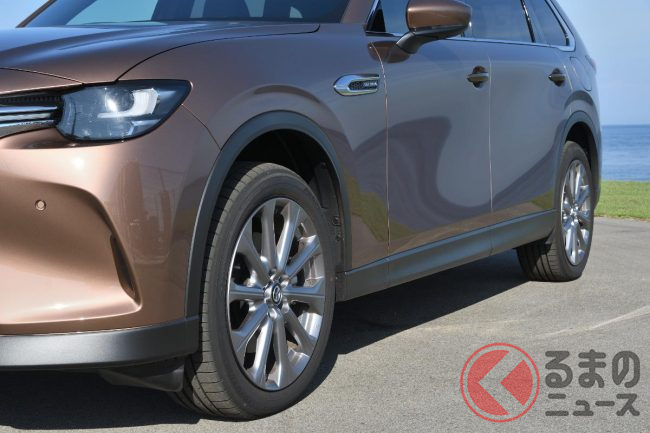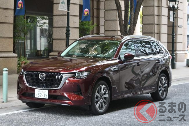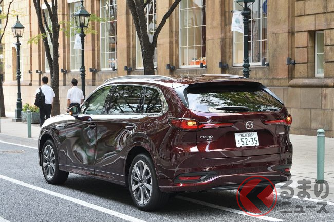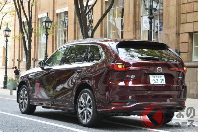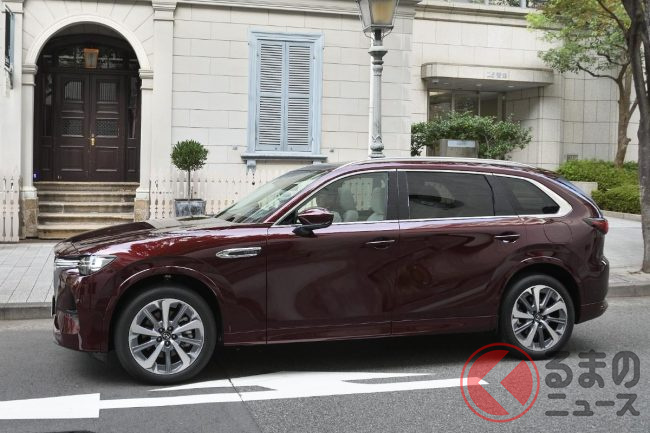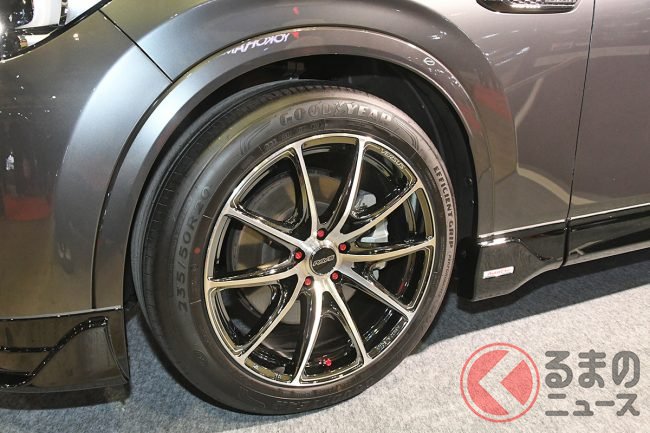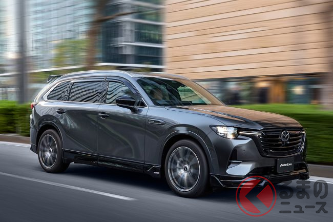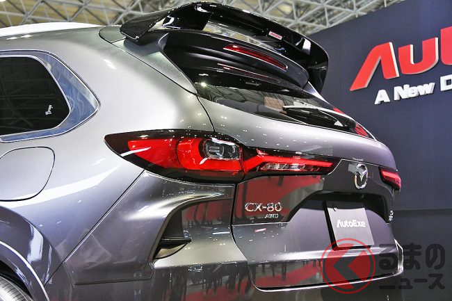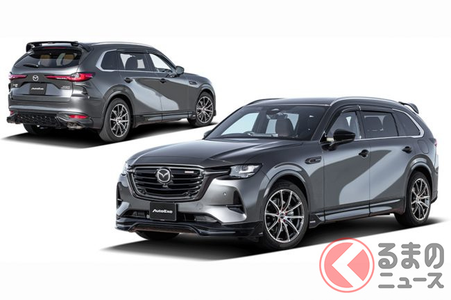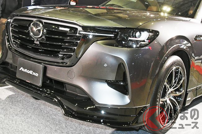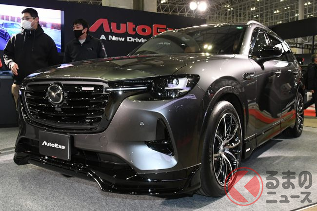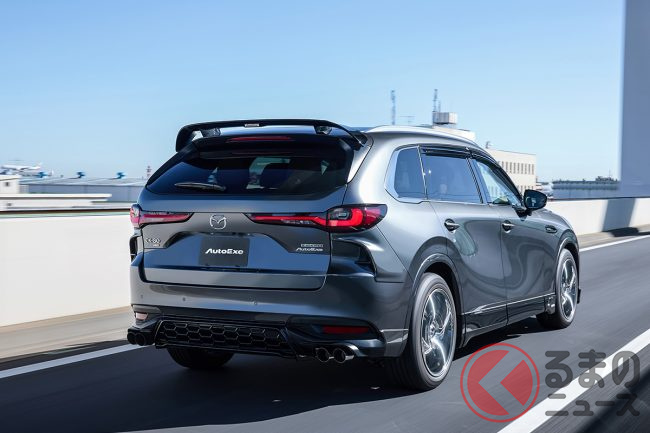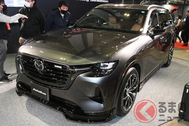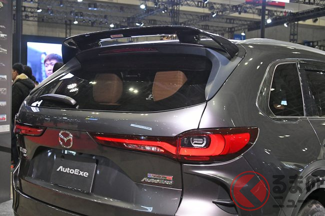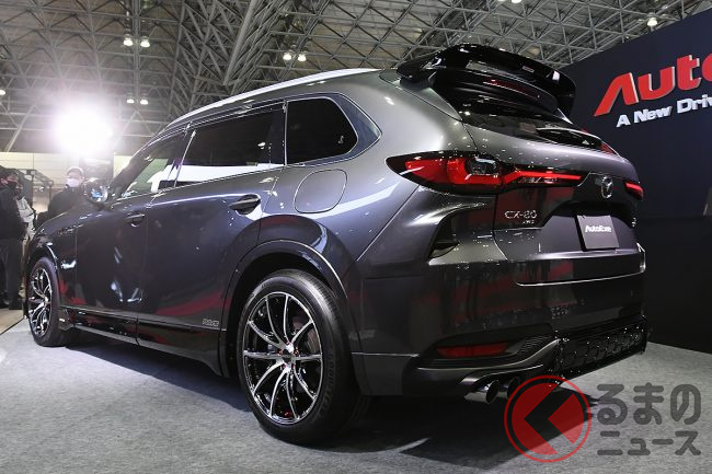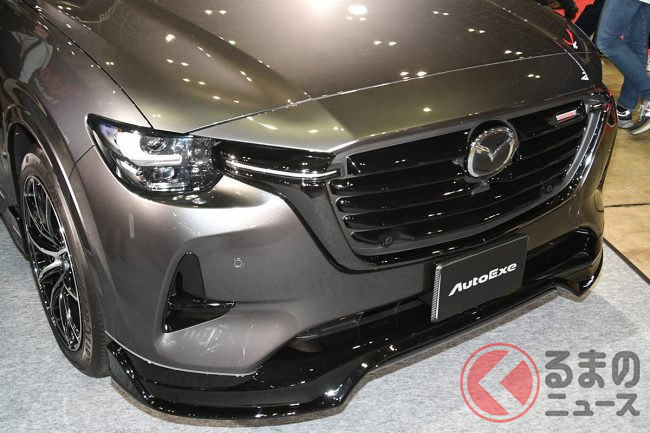 マツダ新「3列シートSUV“カスタム”」初公開! ローダウン×「重厚“黒”エアロ」で「CX-80」がグッと“精悍”に! オートエクゼ「KL-07」TASで実車展示