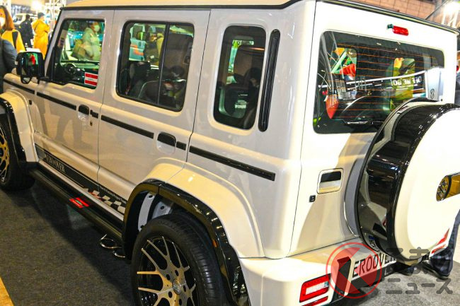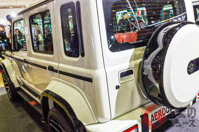 AERO OVER(エアロオーバー)は、「東京オートサロン2025」にて、スズキ「ジムニー5ドア」をメルセデス・ベンツ「Gクラス」ふうに仕上げた「AERO OVER G62L -5 door model-」を展示しました。どのようなモデルなのでしょうか。