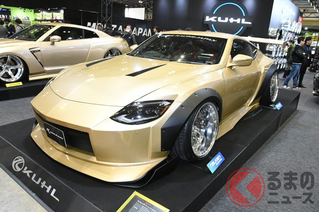 「“すごい”フェアレディZ」初公開! ワイドボディ×巨大ウイングが“超”ド迫力! ゴールドカラーもまぶしい「KUHL 34ZR-GTWR SPEC-D」TASに登場