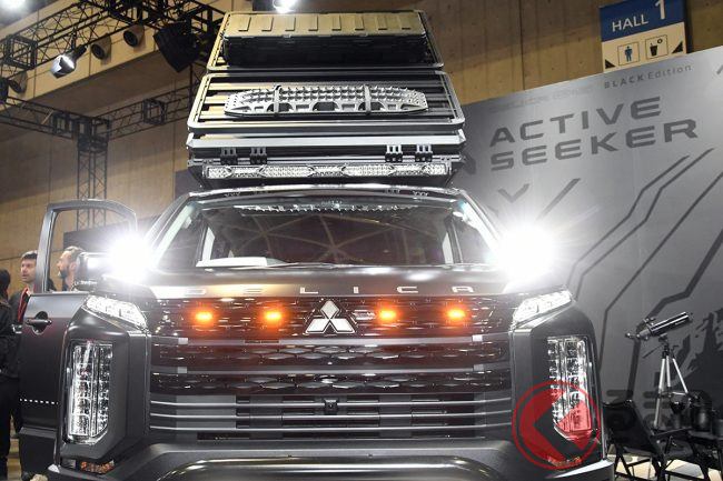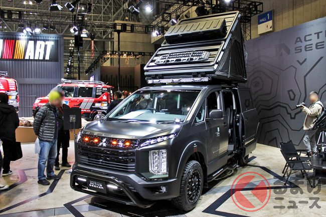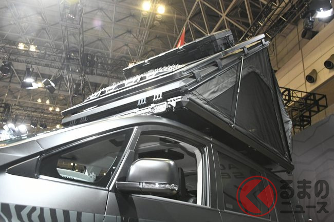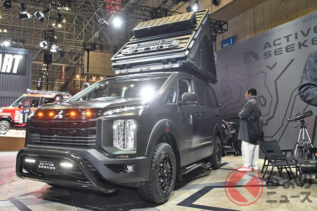三菱「“ポップアップ”ミニバン」登場! ワイルドすぎるカスタム仕様、実は「ポップアップルーフ」市販化の布石!? 車中泊ユーザーも注目の「デリカD:5 ブラックエディション“アクティブシーカー”」TASで公開