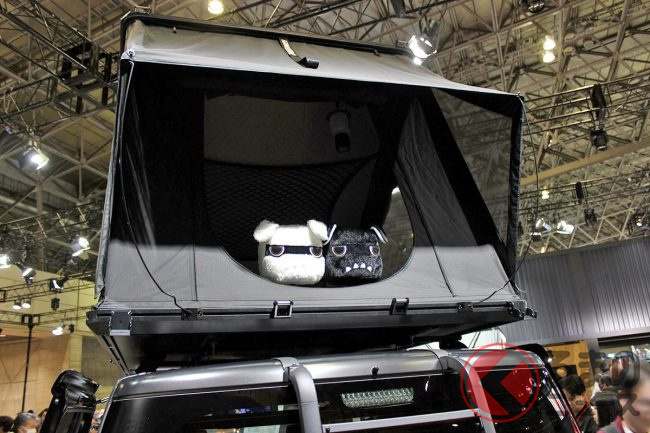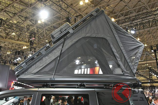 残念ながら会場の説明では、市販化やルーフテントのオプション設定、ポップアップルーフ仕様の市販化といったことは今のところ予定にないとのことでした。