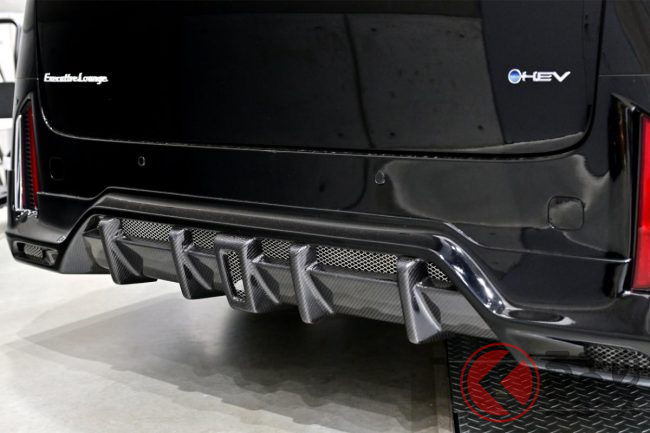 そしてサイドステップやリアアンダーディフューザーも装備し、あらゆる角度から見ても迫力満点のエクステリアを完成。