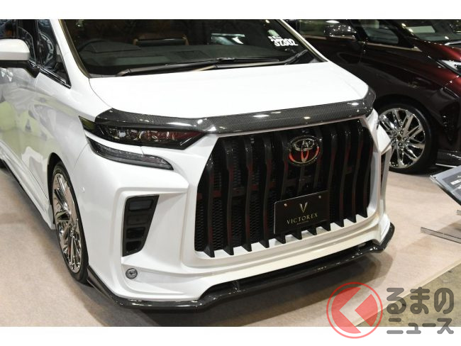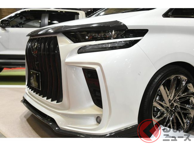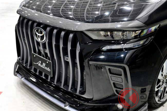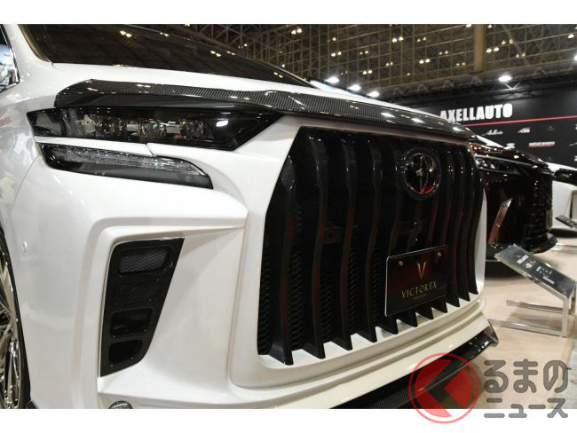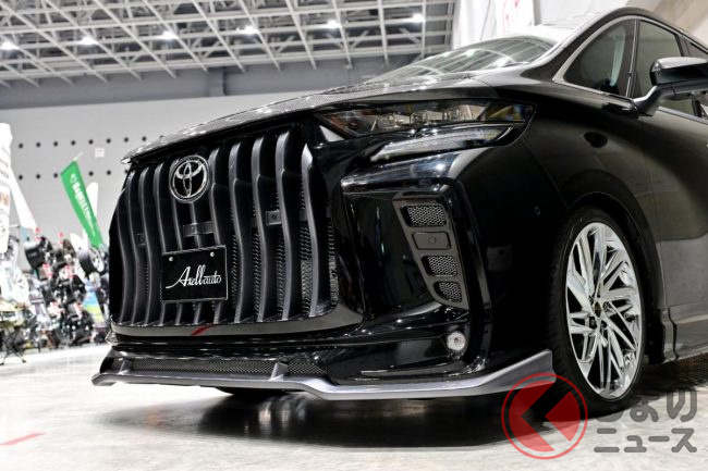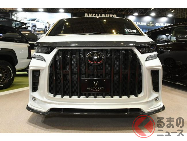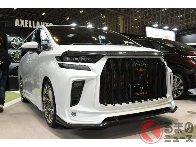 トヨタ高級「ヴェルファイア」に“鉄仮面グリル”採用! 存在感すごい「斬新カスタム」実現した“アクセルオート仕様”実車展示! ド迫力の「最強ミニバン」東京オートサロンで見せた姿とは!