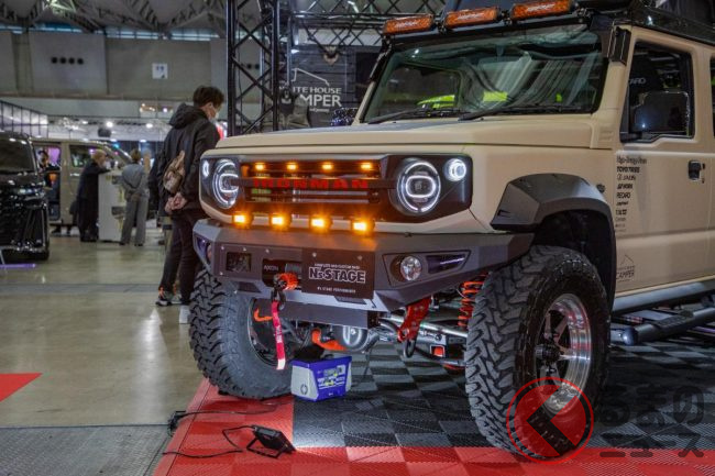カスタムカーの祭典「東京オートサロン2025」には、2024年に続きドレスアップされた「ジムニー5ドア」が会場に登場。