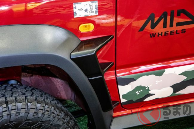 リフトアップやドレスアップパーツ装着といったジムニーカスタムのオーセンティックなメニューに加えて、5ドアにはある特徴が見られました。