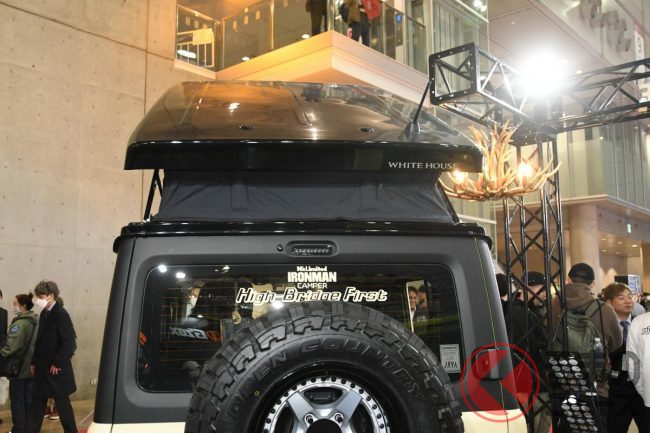 まず最初のカスタムカーは、「MIDホイール」を展開しているマルカサービスが、人気アウトドアブランド「DOD」とのコラボで創ったジムニー5ドア。