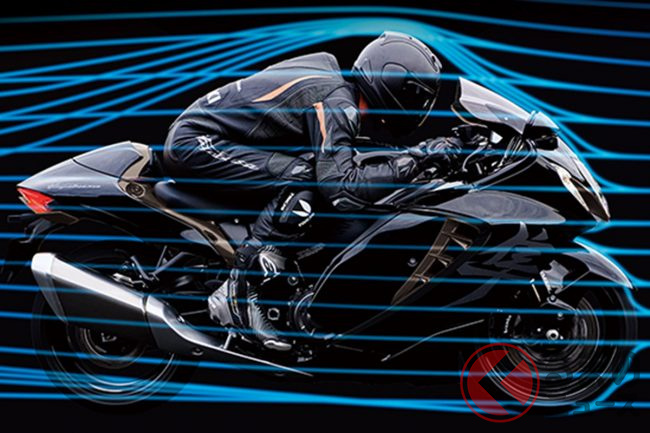 ハヤブサの特徴は、常に最先端の技術を搭載するとともに、入念に風洞テストと高速度走行テストをおこなうことで、空力を最適化した個性的なフェアリングを備える点。