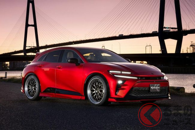 トヨタ最新SUV「クラウンスポーツ」フルエアロ仕様が登場! 超スポーティ仕上げな「クールレーシング」SH36-RSがカッコいい! ド迫力「ローダウン」のカスタムモデルを実車展示!
