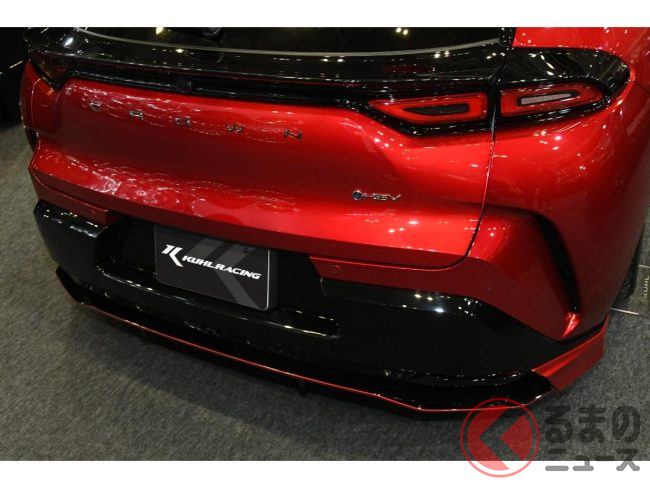 そんなKUHLが手がけるクラウンスポーツのエアロは、「KUHL RACING SH36-RS」というネーミングのもと、フロントハーフスポイラー、サイドステップカバー、リアハーフディフューザー、ルーフエンドウイング、リアゲートウイングの5点で構成されています。
