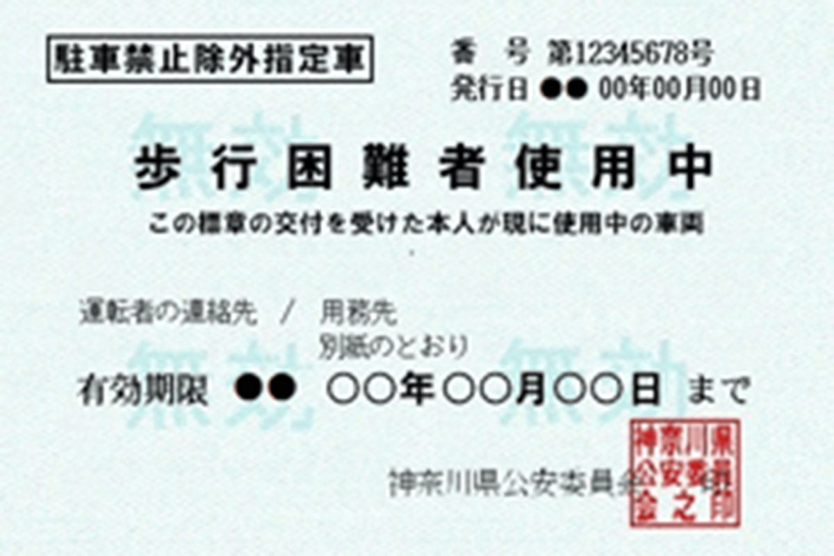 ただし、身体の障害などにより歩行が困難な人については、一定の基準を満たした場合に「駐車禁止等除外指定車標章」の交付を受けることができます。