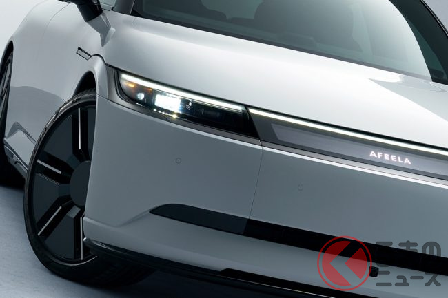 ソニー・ホンダ新型「セダン」発表! ツルツルボディの「ハイパワーモデル」! 斬新ディスプレイグリル採用の「アフィーラ“ワン“」アメリカで予約開始へ