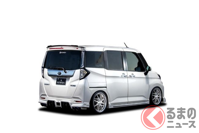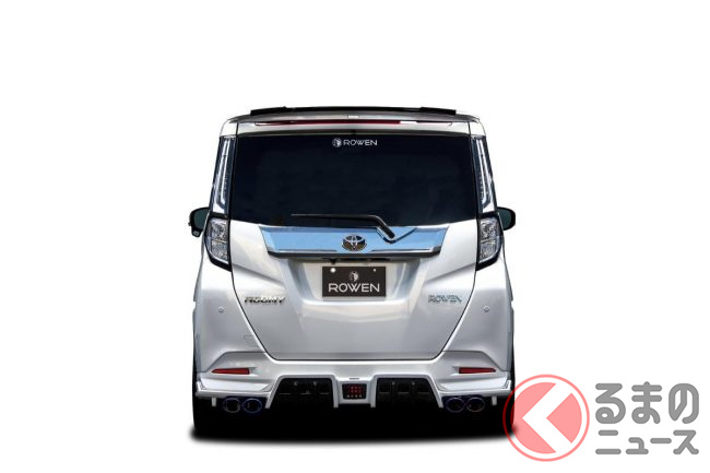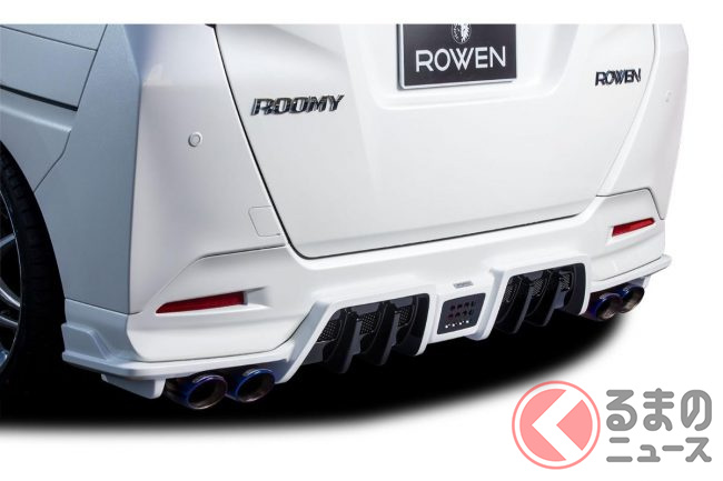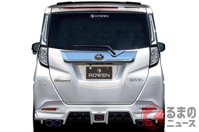 285万円の斬新「“ド派手”ルーミー」に反響集まる! 「専用エアロ」&“4本マフラー”がカッコイイ! シャコタン仕様のROWEN「小型バン」に熱視線!